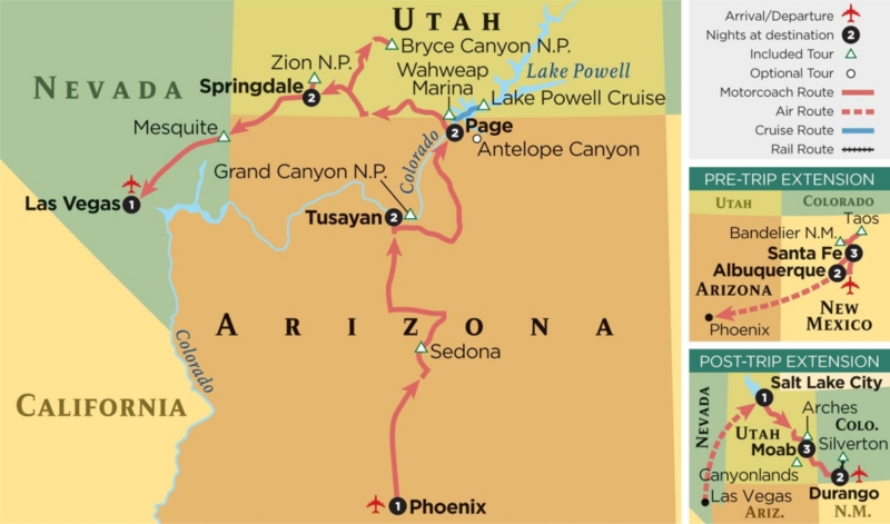 Arizona: Phoenix, Tusayan, Page | Utah: Springdale, Salt Lake City